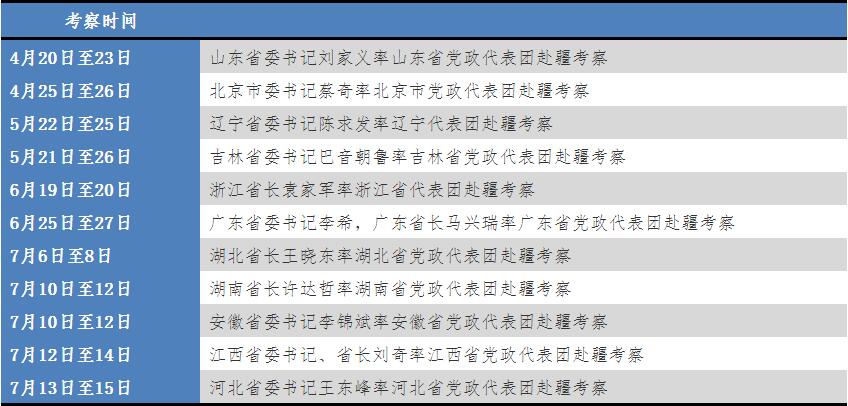 從考察時間上來説,7月最多,已經迎來了5省的考察團。在7月10日至12日,湖南省長許達哲和安徽省委書記李錦斌均率團在新疆考察。