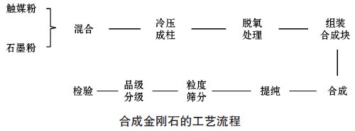 中國合成金剛石在全世界佔據絕對優勢與自主研發的大型化合成壓機、優質硬質合金頂錘、粉末觸媒和間接加熱工藝(合稱粉狀工藝)的工業化密不可分。