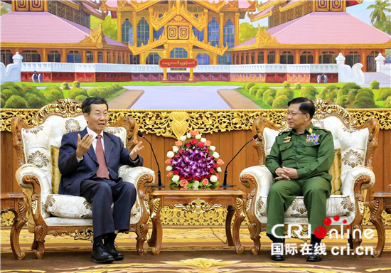 緬甸國防軍總司令敏昂萊13日在內比都會見孫國祥一行(國際在線 圖)