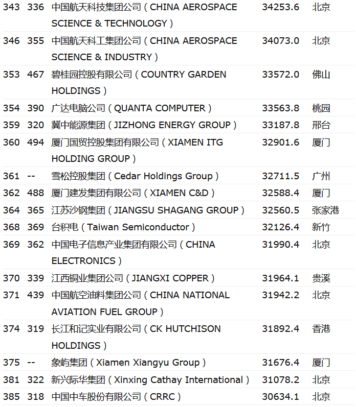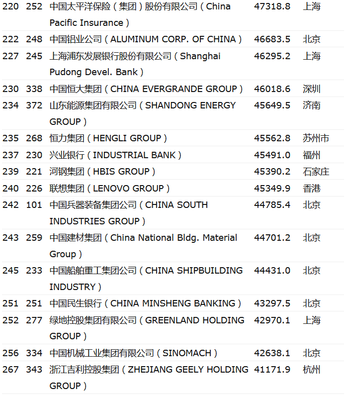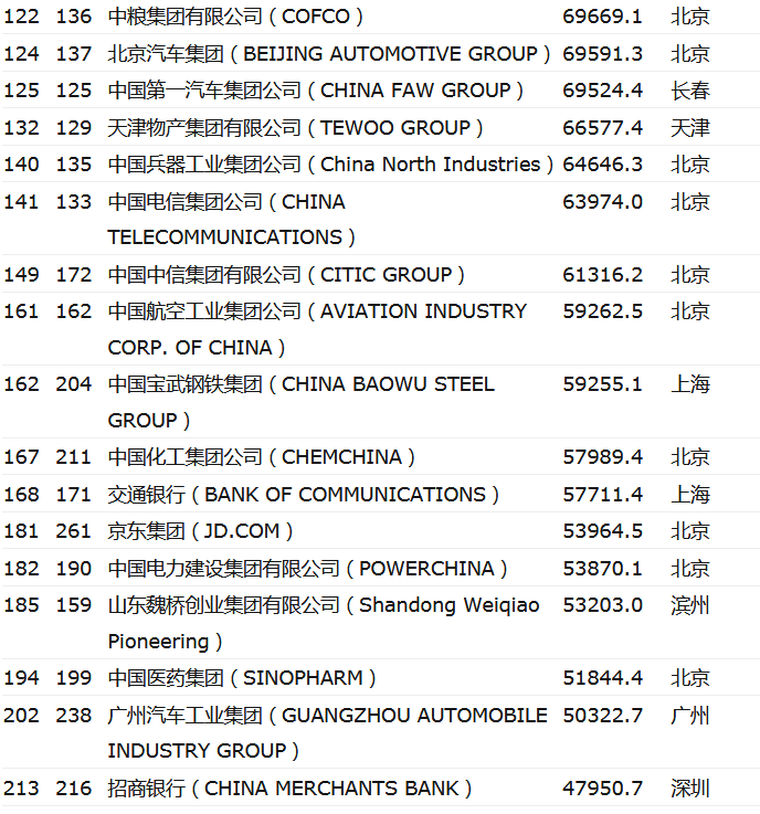 其中,始創於1872年晚清洋務運動時期、也是中國改革開放先行者的招商局集團首次上榜,排名位於280位;