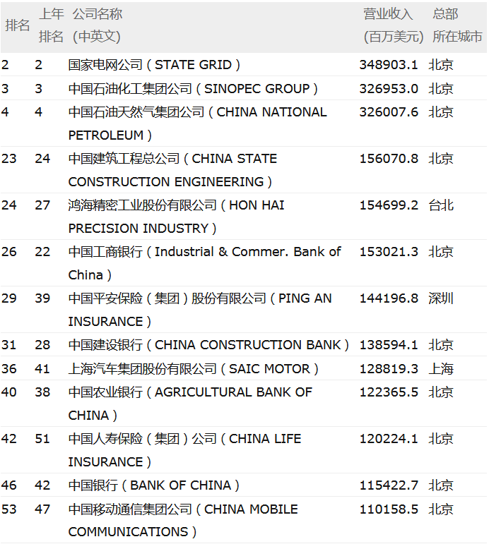 7月19日晚,美國《財富》雜誌發佈新一期世界500強排行榜。