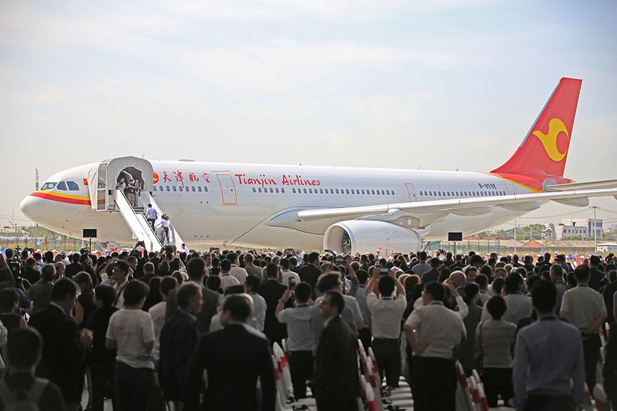空客天津交付的首架A330寬體客機,圖片來源:中新社