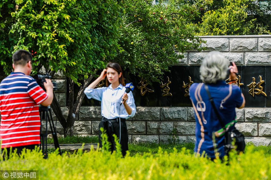 7月24日 長春長生生物科技股份有限公司廠區大門緊閉,山東衞視的記者在門前採訪(圖自視覺中國)