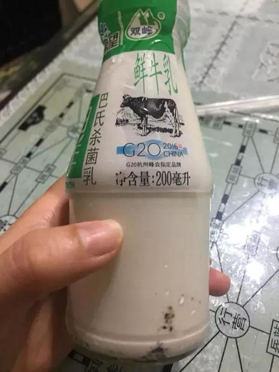 新希望牛奶瓶子內有大塊“黴菌斑”!誰的錯?