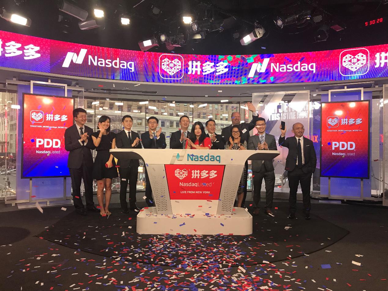 納斯達克亞太區主席麥柯奕現場宣佈,於兩地同時敲鐘,這在納斯達克歷史上尚屬首次。拼多多董事長兼CEO黃崢最終選擇留在國內,與三億多消費者和億萬家庭共同見證這一時刻。