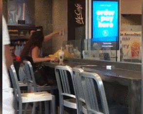 另外,也能聽到女顧客稱“這就是為什麼你丫站在櫃枱後面”,説完就把炸薯條灑得滿地都是,口中反覆喊着“打我啊”,整個餐廳幾乎都能聽見她的聲音。