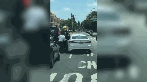 幾分鐘後,一名路人的出現阻止了雙方的暴力衝突,但此時,嫌犯突然拔走了受害人車內的鑰匙,跳上自己的車準備逃離。
