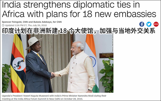 美國有線電視新聞網7月26日報道,莫迪在烏干達議會演講時表示,印度將在未來三年內在非洲新設18個大使館,並加強對該地區事務的參與度。