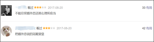 比如,在電影《英國病人》的豆瓣短評中,很多提到不認同本片“三觀”、“婚外情”的評論得到不少網友的贊同。