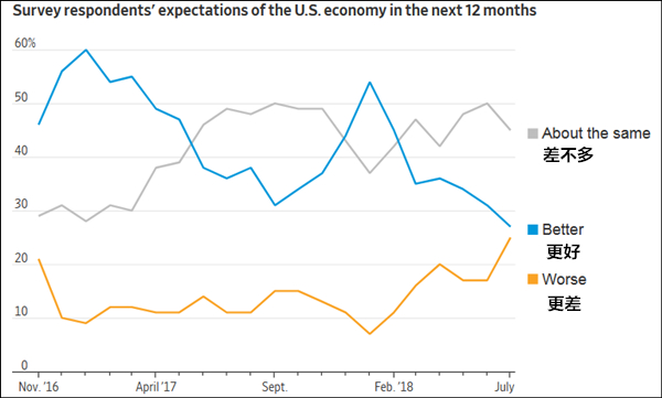 據《華爾街日報》和諮詢公司偉事達(Vistage Worldwide)對750多家小企業的月度調查,7月小企業的樂觀程度跌至自2016年總統大選來的最低點。