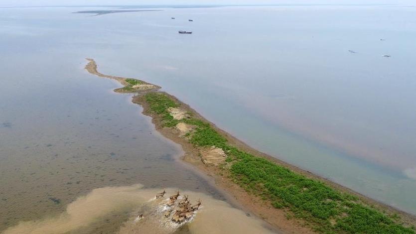 被野放的麋鹿在江西鄱陽湖濕地奔跑(來源:新華網)