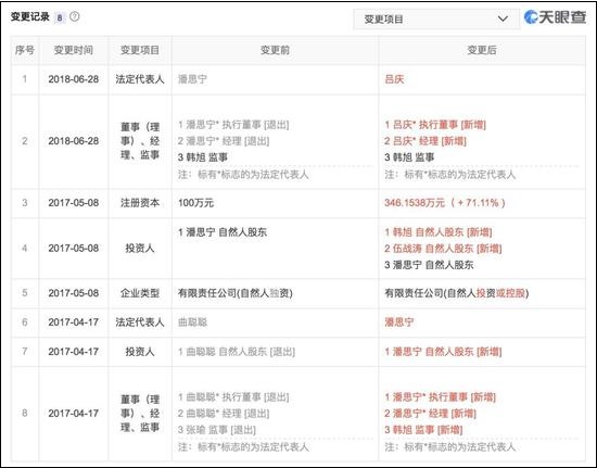 (工商信息顯示,北京景騏科技有限公司的法定代表人和執行董事是在2018年6月28日完成的變更)