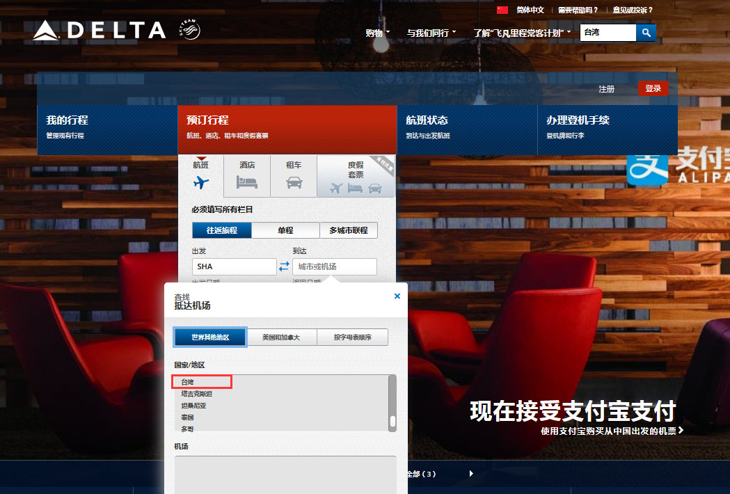 觀察者網查詢發現,達美航空和美國聯合航空公司動作最慢,官網上機場“國家/地區”一欄,仍可見“台灣”選項,並與其他國家和地區並列。