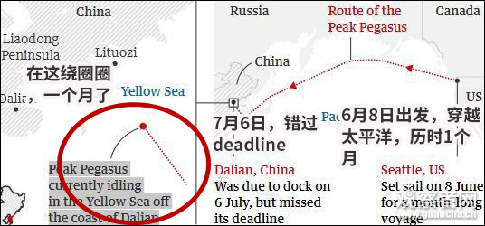過去一個月,“飛馬峯號”的軌跡。原圖來自英國衞報