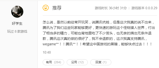 一反常態的是,不少網友在遊戲下方留言稱,不會選擇退款。(全部評論請點擊這裏)