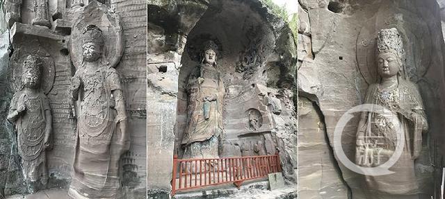 時任安嶽縣文物管理所所長知曉該情況後,庚即趕赴現場,發現主尊造像已被重繪,便立即予以制止,並進行文物保護宣傳。其餘造像未被重繪,至今仍保持原貌。