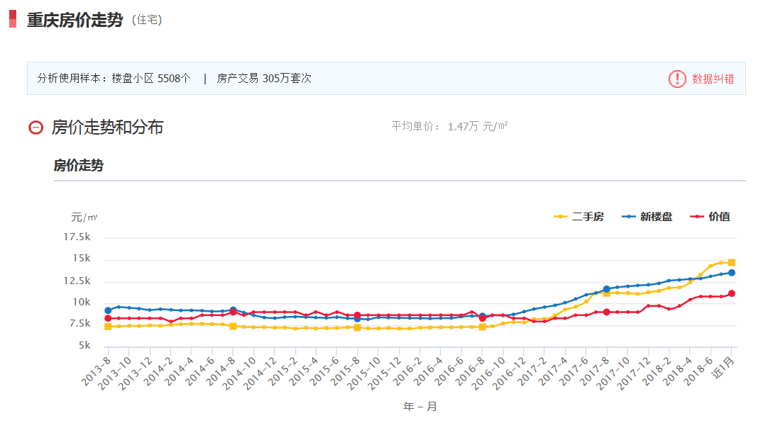 根據公評網及中國房價行情網的數據,近一年來,重慶房價均價漲幅較為明顯,接近四分之一。