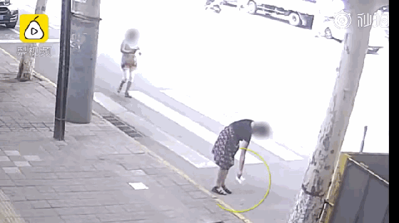 監控錄像顯示,在乾淨的馬路上,一名黑衣女子從塑料袋裏倒出一些煙頭;