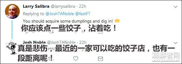 8月15日,《金融時報》助理新聞編輯Josh Noble發了這麼一條推特,表示《金融時報》的fastFT團隊,有一名員工,坐在桌子邊用勺子挖老乾媽油辣椒吃!