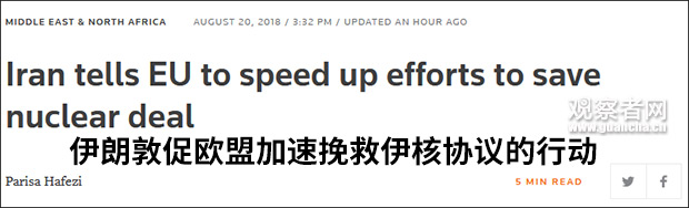 據路透社8月20日消息,伊朗方面今天敦促歐洲加緊努力,以挽救伊核協議。