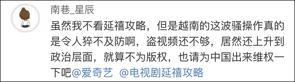 中國影視圈缺乏版權意識,盜版成風的確該罵。可在這事上,這些越南視頻網站侵犯我國領土,是絕對不可以含糊過去的,必究其責!
