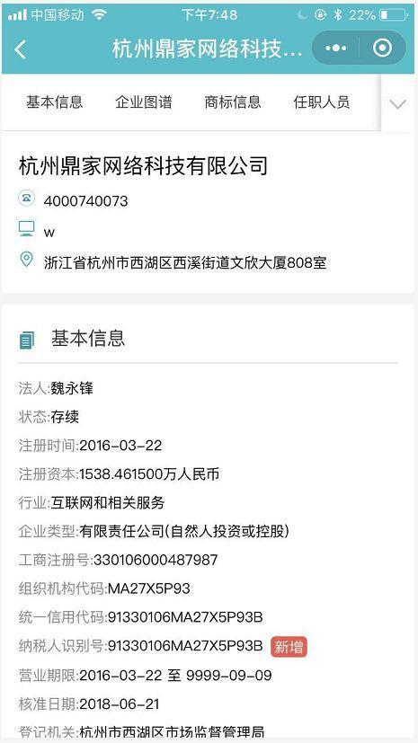 中國房地產報記者通過天眼查,查到該公司的註冊時間為2016年,目前評分為84分,公司並未註銷,也沒有訴訟、相關法院公告及變更記錄。而公司法人魏永鋒名下還有28家公司。同時,有自稱鼎家公司前員工的人士爆出,鼎家所謂的業務承接方極有可能就是該公司換了一個殼。