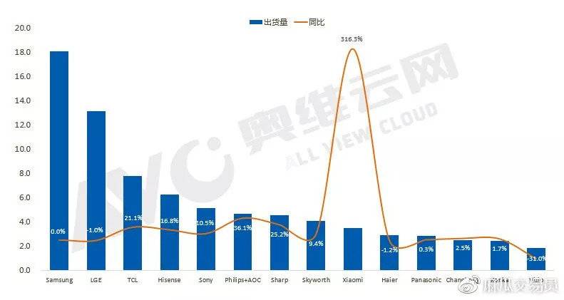 智能電視的全球銷量於2018年Q2同比增長超過350%。2018年第二季度我們成為中國大陸第一電視品牌(18Q2進入印度市場並取得顯著市場規模)