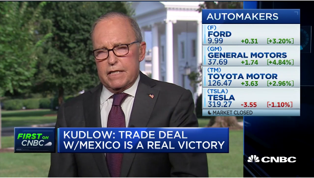 白宮首席經濟顧問,在中美貿易談判中持“鷹派”立場的庫德洛27日在接受CNBC採訪時吹噓,(與墨西哥達成協議)將給中國“帶來壓力”。