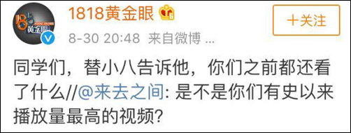 這個數據成功地引起了微博CEO@來去之間 的注意:這是你們有史以來播放量最高的視頻吧?