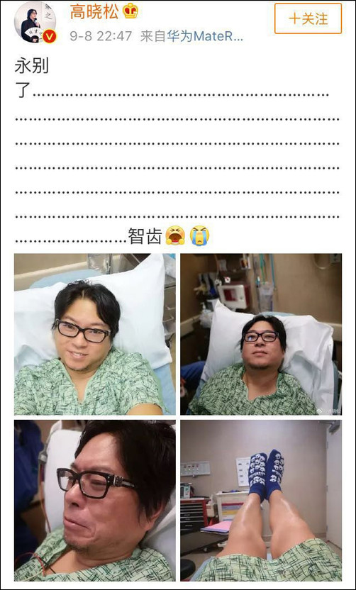 高曉松拔智齒 @丁香醫生:並不會讓臉變小… 2018-09-09 昨天(8日)晚上,高曉松在微博發了四張圖,告訴大家自己去拔智齒了…… 道理我都懂,可是為什麼拔牙要發自拍?而且,又又又磨皮了…… 更令人費解的是,為什麼要拍腿…… 網友:引起不適,舉報了。 微博認證為“丁香園旗下健康科普平台”的@丁香醫生 進行了友情科普: 你們丁香系的話真的很多誒!薛之謙曬娃你們要管,高曉松曬臉你們也管! 這一波無情的科普,碎了多少想通過拔牙瘦臉的少女心啊……