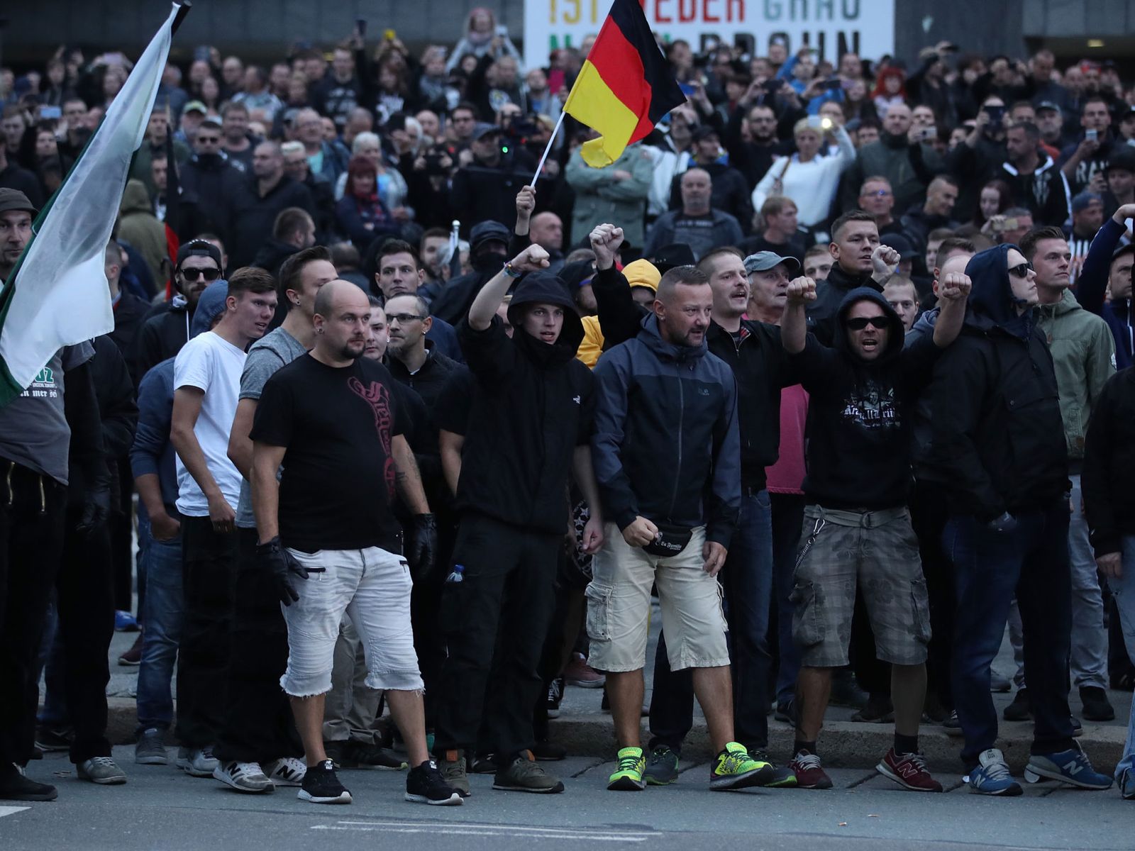 開姆尼茨右翼抗議者(英國天空新聞台 圖)