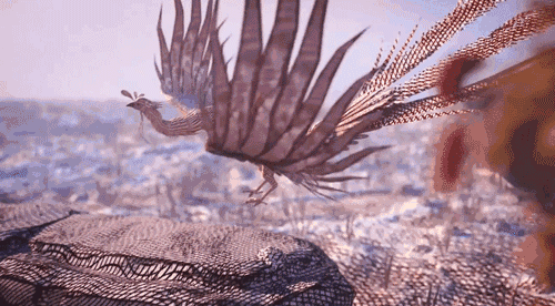 在科普的過程中,還不忘穿插了鳳鳥飛落下來的特寫: