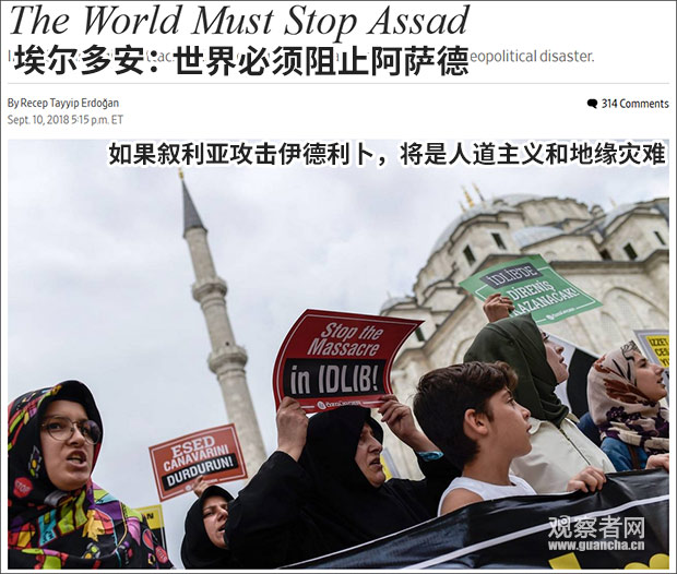 在這樣的局面下,土耳其總統埃爾多安當地時間9月10日在《華爾街日報》網站撰文,呼籲“全世界阻止阿薩德”進攻伊德利卜,與俄羅斯、伊朗以及敍利亞政府的立場進一步拉開距離。