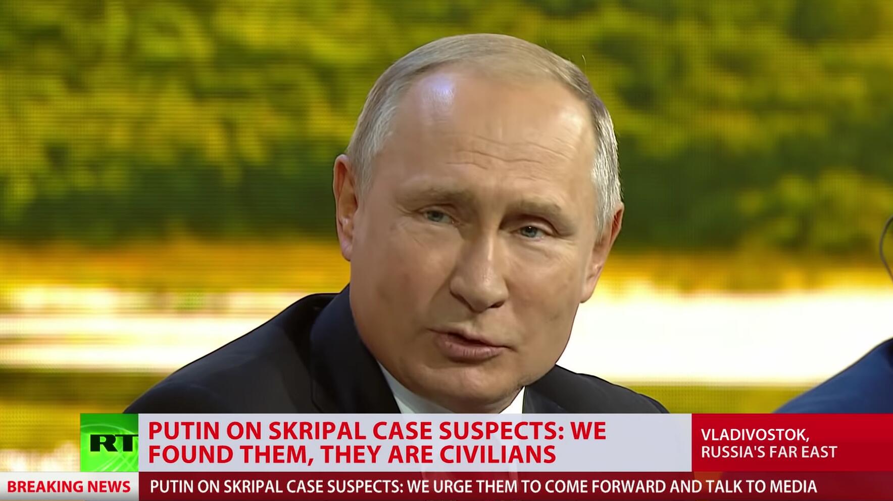 “我們已經調查了這兩人是誰,並且已經找到他們了,”普京在東方經濟論壇上説,“不存在任何犯罪行為……他們只是無辜的平民。”
