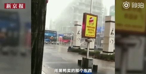 工作人員解釋道,被吹飛的是盒裝的“周黑鴨”食品,可能是近似的紅色外包裝引起了大家的誤會。