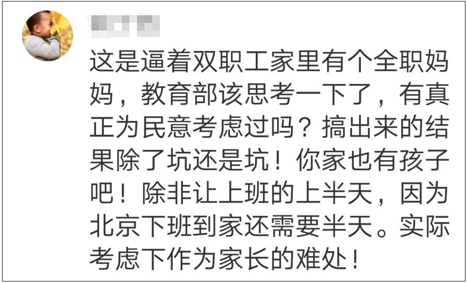 不過,依舊有網民指出,即便允許學生18點離校,對於雙職工家庭來説,接送依舊存在難度。