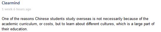 Clearmind:中國學生赴國外留學的原因不一定在教學質量或費用方面,去別的國家瞭解一種不同的文化,這也是他們學習生涯的一個重要部分。
