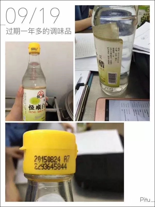 9月19日早上送孩子上學期間,有留心的家長就進廚房進行實地查看,發現有問題。具體問題包括:1、2018年9月18日的午餐雞腿確實有異味,並有大量未食用的處理;2、孩子食用的大米存在大量米蟲;3、發現到有過期米醋,生產日期是2015年8月24日,保質期二年。