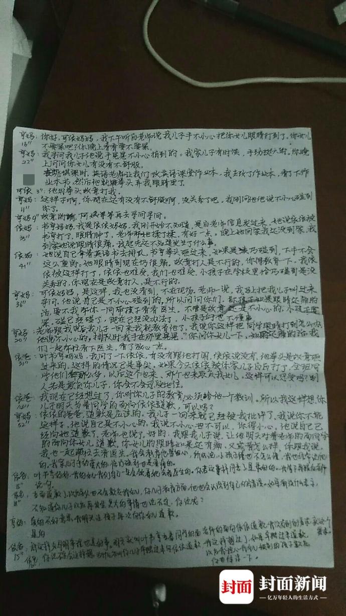通過聊天記錄,可以看出,雙方家長對於處理孩子間的這起糾紛,已達成一致意見。