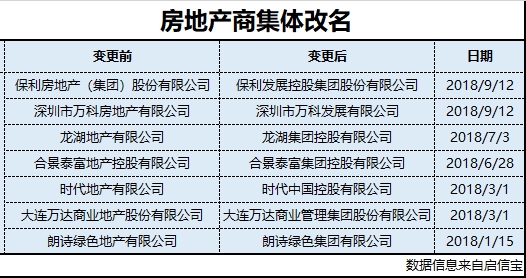 近日,萬科、保利、龍湖完成更名,“弱化”地產二字。實際上, 據不完全統計,從2016年至今已有10多家房企更名,紛紛去除地產、置業等字眼,取而代之的是集團等。