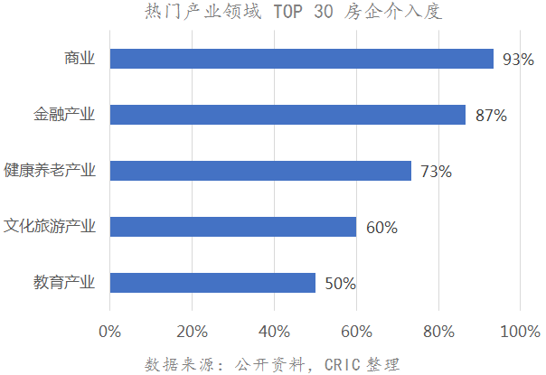 克而瑞發佈的報告顯示,房企創新領域的細分產業共約有12個業態或門類,涉及長租公寓、特色小鎮、物流地產、新零售等。前30強房企的參與度非常高,其中70%以上都在加快多元化投資。而長租公寓、文旅地產、特色小鎮項目受寵。