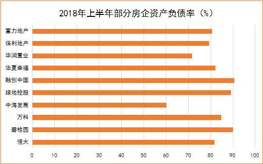 在已經披露半年報的房企中,61家房企資產負債率超過80%。其中,A股房企34家,港股房企27家。太陽城集團甚至出現了資不抵債的情況,資產負債率高達172.33%。融創中國負債率雖出現小幅下降,但90.52%的負債率仍然位於房企高位。碧桂園負債率89.85%,綠地控股負債率88.98%,萬科負債率84.7%。
