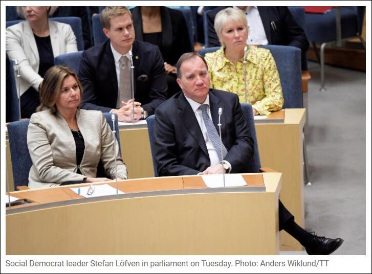 The Local報道截圖:9月25日,勒文在瑞典議會。