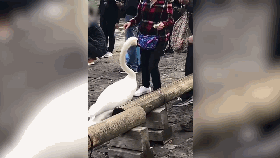 一名遊客挑逗天鵝後被天鵝搶走物品
