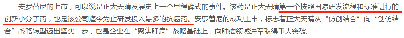 據其官網介紹,該藥是正大天晴首個按照國際研發流程和標準進行開發的創新1.1類小分子藥,也是其迄今為止研發投入最多的抗癌藥,於今年5月9日獲批上市。