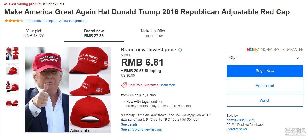 MAGA小紅帽在國外購物網站上居帽子銷售榜首