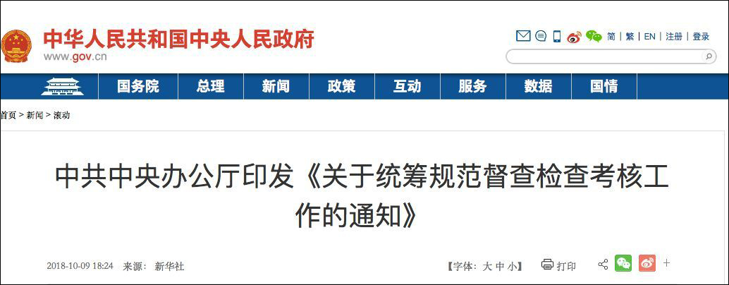 9日晚間,一則新聞極具信息量:近日,中共中央辦公廳印發了《關於統籌規範督查檢查考核工作的通知》。