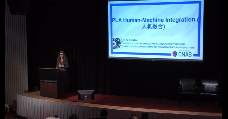 艾爾莎•卡尼亞在2018年度“瘋狂科學家”(Mad Scientist)大會上發表演講,提到中國軍隊的“人機融合” 圖片來源:視頻截圖
