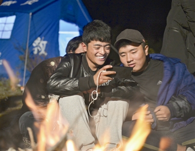 看到堰塞湖自然泄流的新聞,18歲藏族小夥其麥澤翁和朋友非常開心 攝影記者 王勤