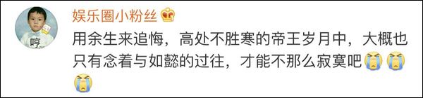 不少觀眾被這一幕感動到淚奔,感慨乾隆醒悟得太晚,負瞭如懿不自知,最終抱憾餘生。